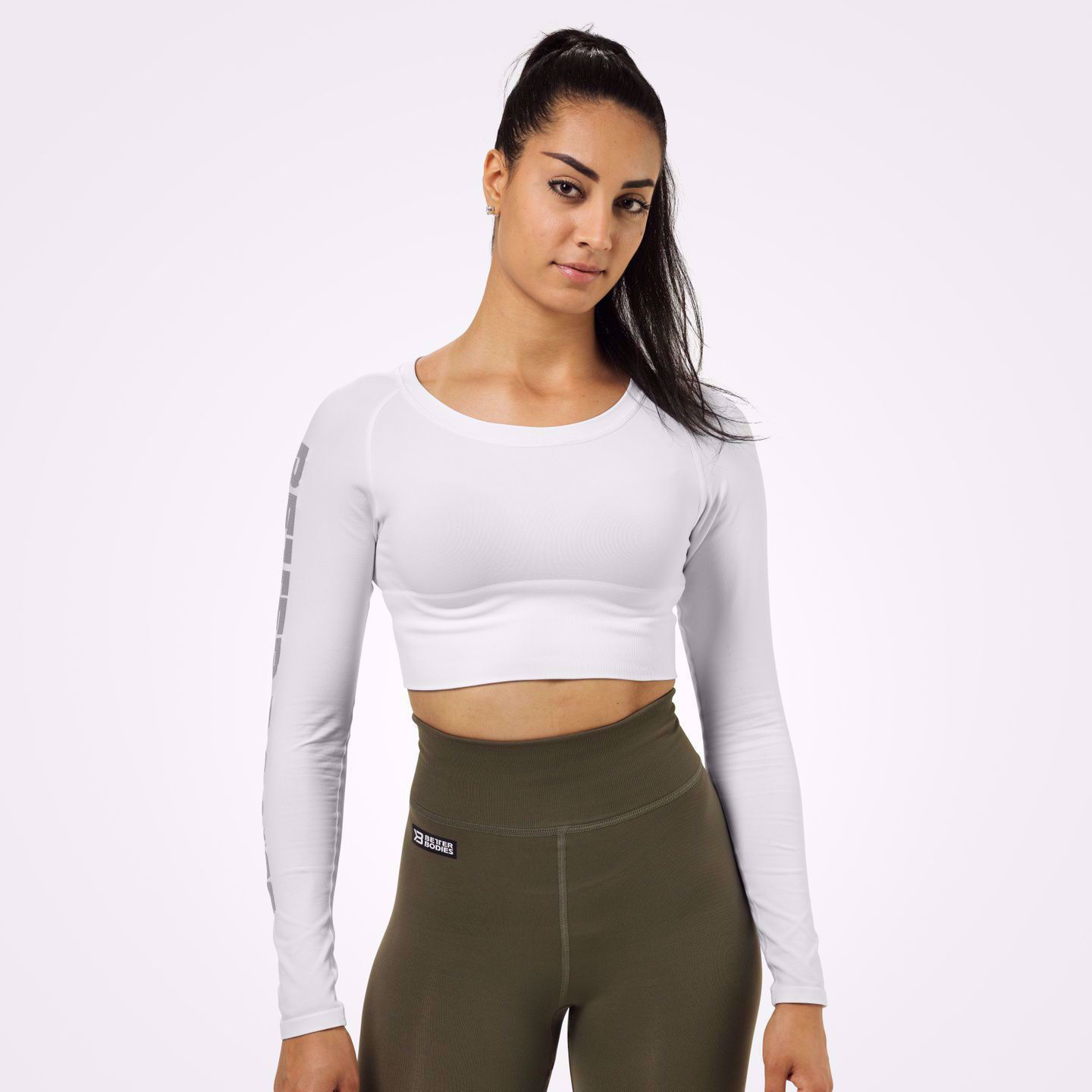 Better Bodies Bowery Women Performance Long Sleeve Crop Top | White | Body Fit